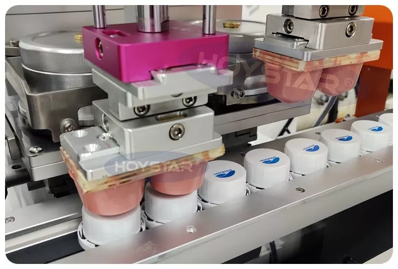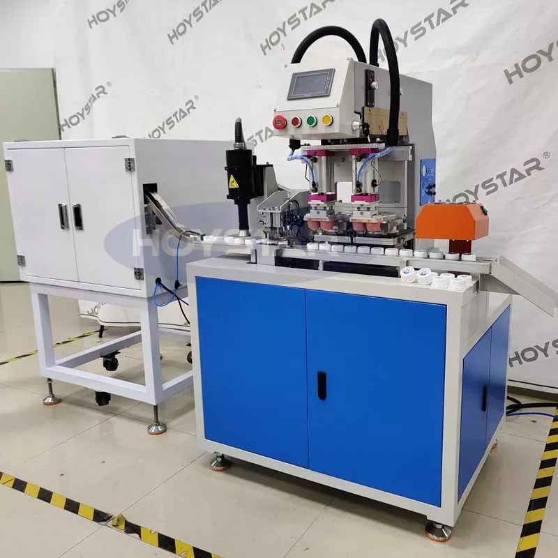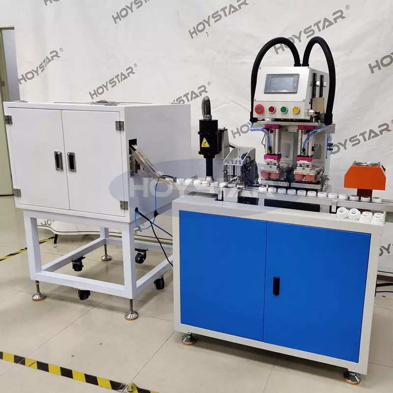 Som den professionella tillverkaren i Kina vill vi ge dig en högeffektiv HOYSTAR 2 Colors Bottle Caps Pad Printer med Plasma Treatment, som är speciellt utformad för utskrift på flaskkorkar. Vår maskin är helautomatisk, utrustad med automatisk matning, automatisk plasmabehandling, automatisk utskrift, automatisk torkning och automatisk avlastning. Maskinen är mycket enkel att använda och har stabil utskriftsprestanda.