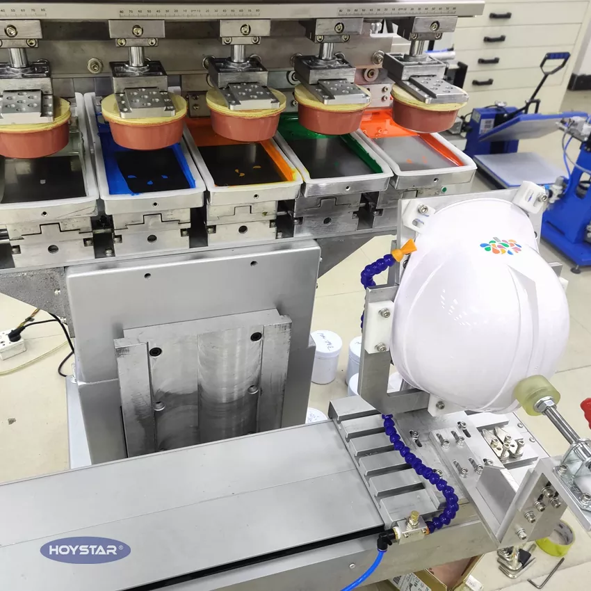 Som den professionella tillverkaren i Kina vill vi ge dig en högeffektiv HOYSTAR 6 Color Pad-skrivare med Shuttle-arbetsbord. Våra maskiner använder PLC och pekskärmskontroll är lämpliga för utskrift av olika produkter. Maskinen har det konkurrenskraftiga priset, tillsammans med ett litet fotavtryck och stabil utskriftskvalitet.