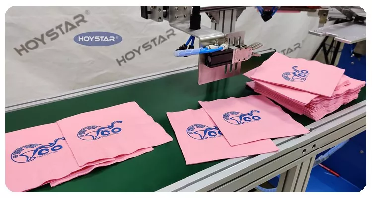 Som den professionella tillverkaren och leverantören, HOYSTAR Automatic 1 Color Servett Screen Printing Machine. är speciellt utformad för helautomatisk utskrift på servetter. Dess strömlinjeformade utskriftsprocess utvecklas enligt följande: ladda servetterna manuellt på maskinen – automatisk utskrift av den första färgen – automatisk torkning – automatisk avlastning – och automatisk produktinsamling.