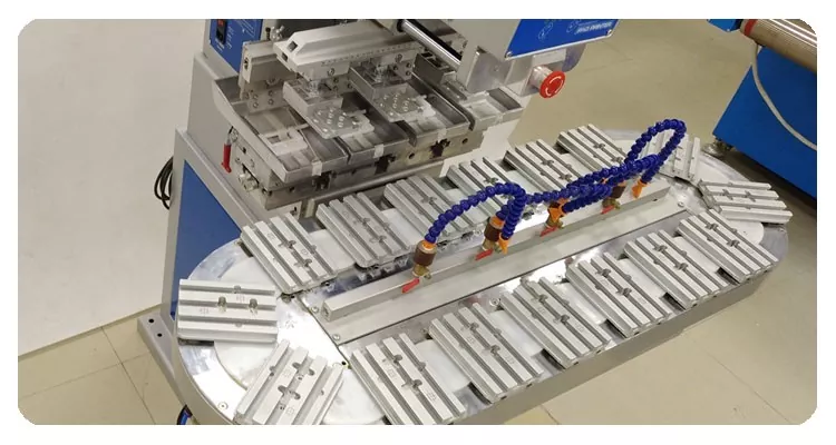 Utrustad med roterande bord, bekvämt för lastning och lossning av produkt och har en hög utskriftseffektivitet