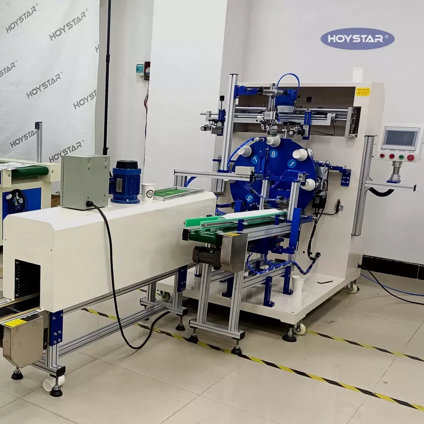 Som den professionella tillverkaren i Kina vill vi ge dig högeffektiv HOYSTAR helautomatisk 1-färgs cylindrisk screentryckmaskin för PP/PET-kopp, högeffektiv screentryckslösning skräddarsydd för specifika scenarier - vår specialiserade helautomatiska screentryckmaskin för koppar. Denna maskin är designad för utskrift på koppar och kommer med ett komplett helautomatiskt arbetsflöde: automatisk laddning, automatisk utskrift, automatisk avlastning och IR-torksystem. Minskar arbetskostnaderna avsevärt och minimerar även fel under utskrift, vilket säkerställer stabila utskriftsresultat i massproduktion.
