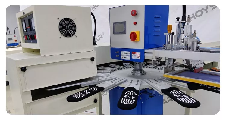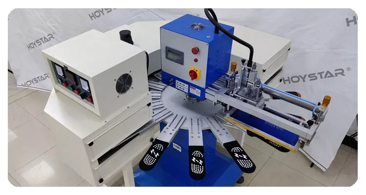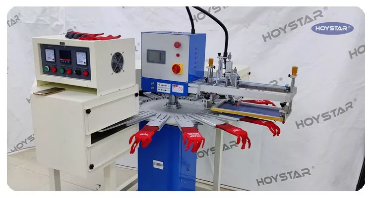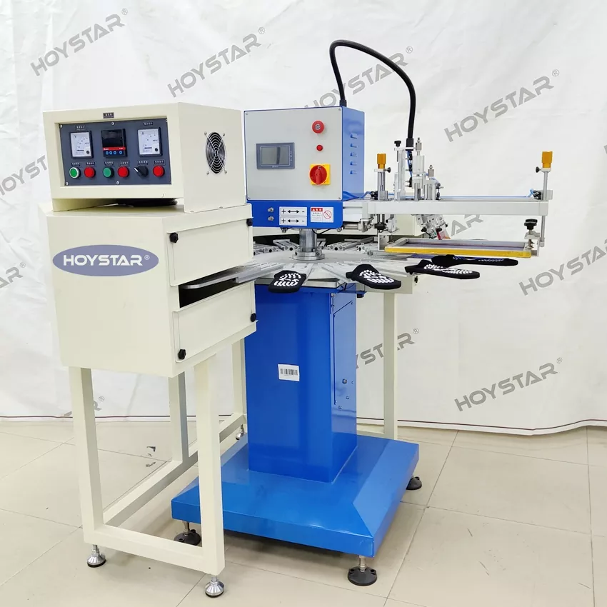 Som den professionella tillverkaren i Kina skulle vi vilja förse dig med högsnabba HOYSTAR Stora strumpor Silk Screen Printing Machine. Denna kommer med 16 arbetsstationsmaskin lämplig för högvolymproduktion. Den har avancerad PLC och pekskärmskontroll kan skriva ut strumpor och klackar. En integrerad IR-torktunnel säkerställer effektiv torkning av silikon och bläck