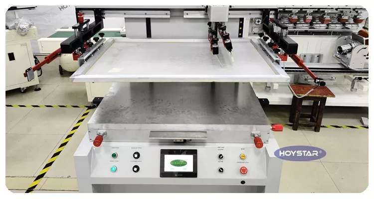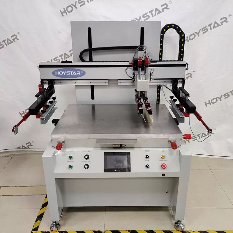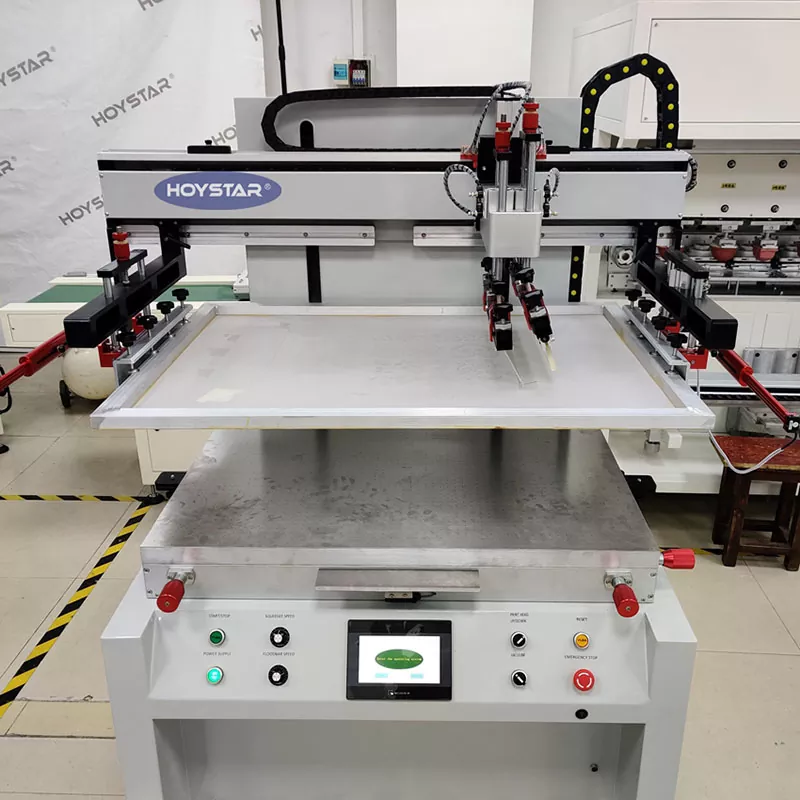 Som professionell tillverkare och leverantör är HOYSTAR Semi Automatic Flatbed Screen Printing Machine designad för utskrift på olika platta föremål, Utrustad med ett vakuumsugsarbetsbord förhindrar effektivt förskjutning av platt tryckmaterial Oavsett om du skriver ut med papper eller plastfilm, garanterar denna funktion att varje utskriftsprodukt uppfyller kundens höga kvalitetskrav.